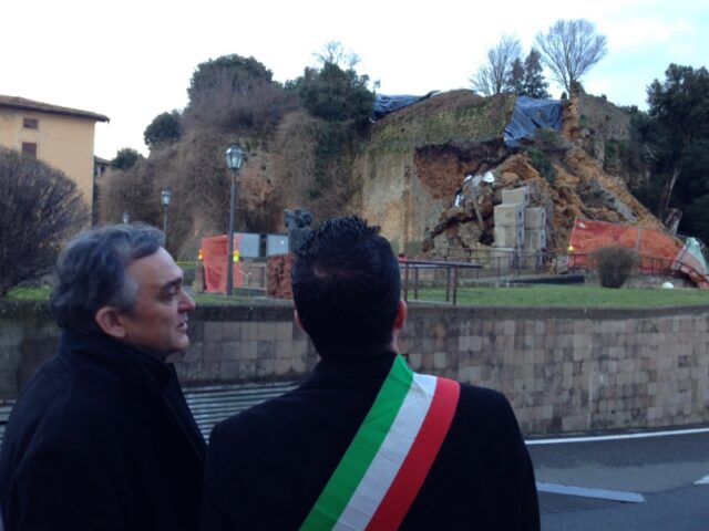 Un assegno da 4 milioni di euro pronto per essere staccato a favore di Volterra. E’ quanto è stato firmato dalla Regione Toscana che, con l’improvviso sopralluogo del Governatore Enrico Rossi ha promesso 3 milioni di euro, a cui si è aggiunto nella tarda serata di ieri un milione promesso dal Ministro per i Beni culturali Dario Franceschini. Risorse destinate alle somme urgenze dopo il crollo delle mura medievali (leggi) e il crollo dello sperone in piazza dei Martiri della Libertà.