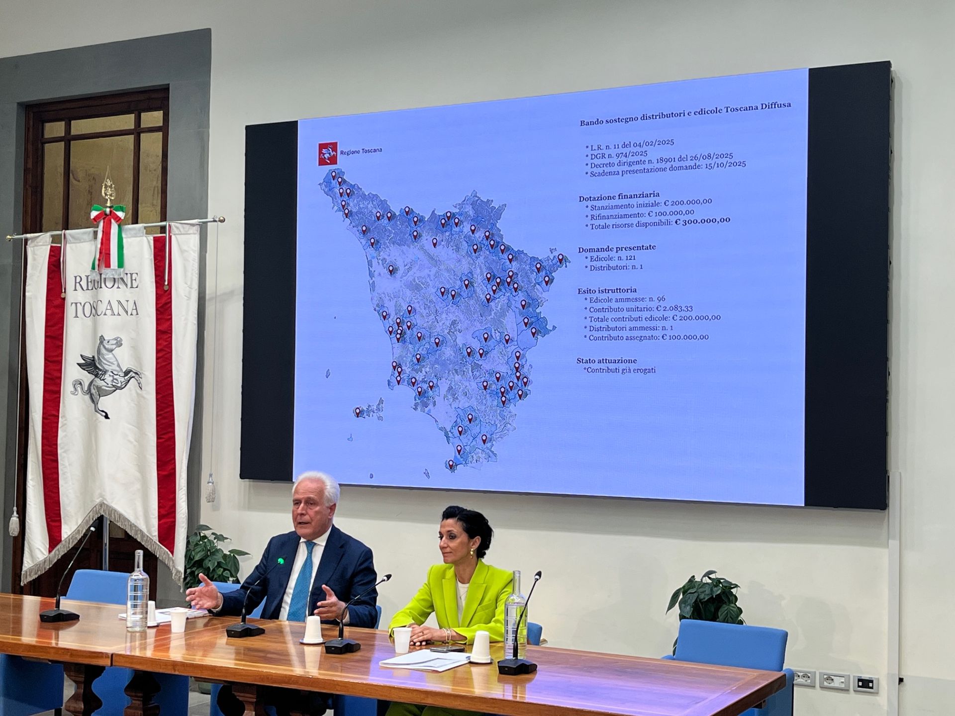 Il piano d’intervento per l’anno in corso ha mobilitato 300mila euro, destinati ai 194 comuni definiti “marginali”. Un’operazione che Giani definisce “egregia” e che ha visto una risposta massiccia dal territorio. Per quanto riguarda le edicole su 121 domande presentate, 96 esercizi hanno beneficiato di un contributo di 2.083 euro ciascuno, attingendo a un fondo di 200mila euro. Per quanto riguarda i distributori dei 100mila euro stanziati per questa categoria, la cifra è andata interamente all’unico operatore che ne ha fatto richiesta.