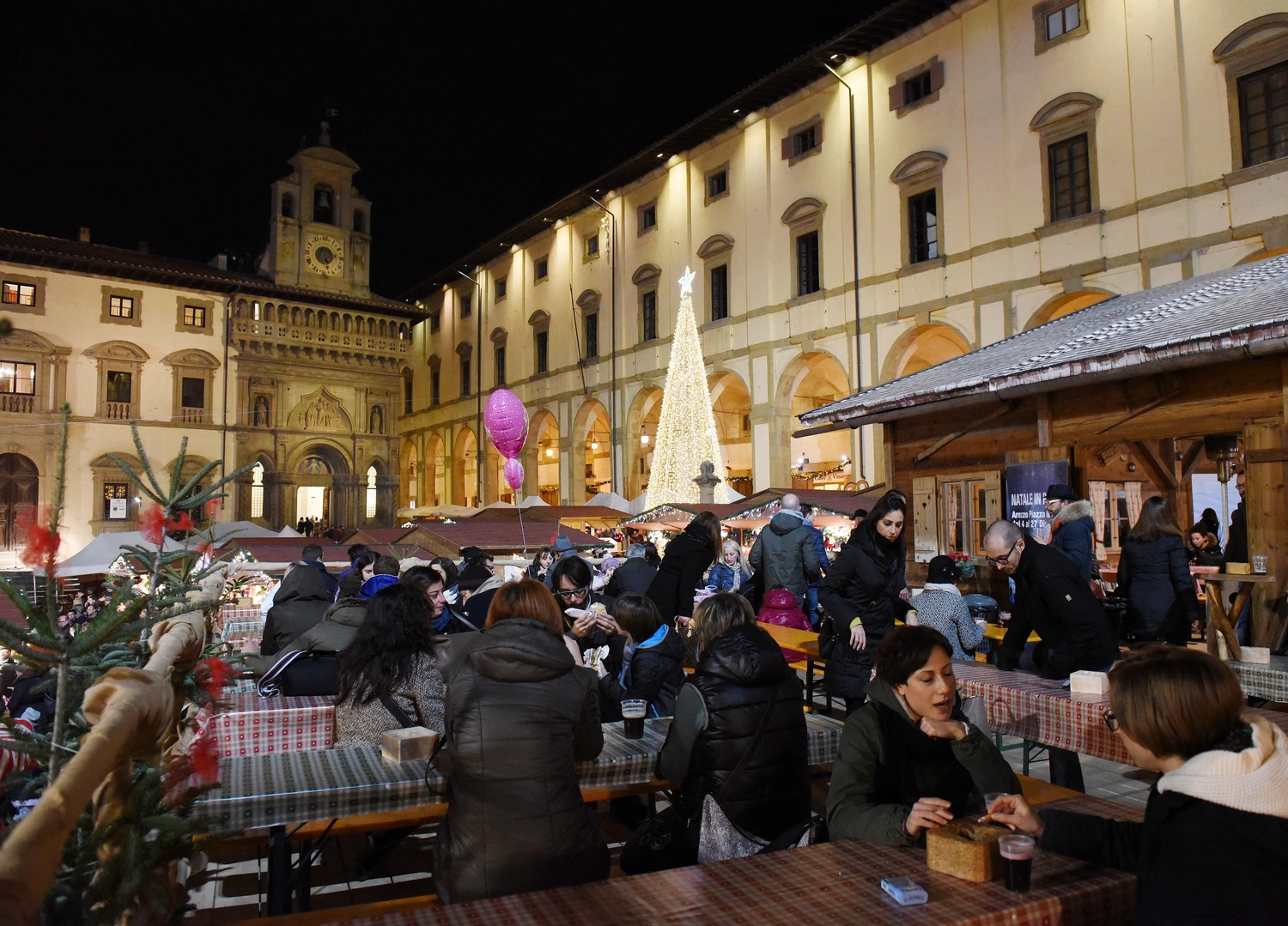 Ultimi giorni per visitare il Mercato di Natale in piazza Grande ad Arezzo, il primo organizzato in città dalla Confcommercio con il patrocinio del Comune, l’unico tirolese “doc” fuori dai confini della regione italo-austriaca. La grande baita e le venticinque casette di legno con i prodotti tipici artigianali ed enogastronomici allestite di fronte alle Logge del Vasari resteranno aperte fino a domenica 27 dicembre con orario 10-21 e 10-22 nel fine settimana. Orario ridotto invece per la vigilia di Natale (10-18) e per il giorno di Natale, quando il mercatino sarà in funzione dalle 15 fino alle 22. Ed è tutto pronto per gli eventi che accompagneranno l’ultimo fine settimana in città del villaggio tirolese. Domenica 27 dicembre è in programma “Santo Stefano per il Calcit”, la grande festa dedicata alla raccolta di fondi in favore del Calcit e della lotta contro i tumori. Dalle ore 15.30 arriveranno in piazza Grande alcuni Babbi Natale che distribuiranno caramelle e dolcetti ai bimbi, in collaborazione con il Vespa Club e il Quartiere di Porta Crucifera. In più, ci saranno musica e karaoke sulla terrazza di Fraternita con il maestro Enzo Scartoni e Andrea Fognani. Già domenica sera, dopo le 22, inizieranno le operazioni di smontaggio degli stand, che dovrebbero terminare entro la mezzanotte del giorno dopo, in tempo per lasciare piazza Grande libera prima di San Silvestro. Soddisfatti gli organizzatori, a partire dalla Confcommercio e dalla società Tirol Event, che ha scelto proprio Arezzo per portare per la prima volta fuori dal Tirolo gli operatori che hanno reso celebri i mercatini di Bolzano, Merano e Salisburgo.