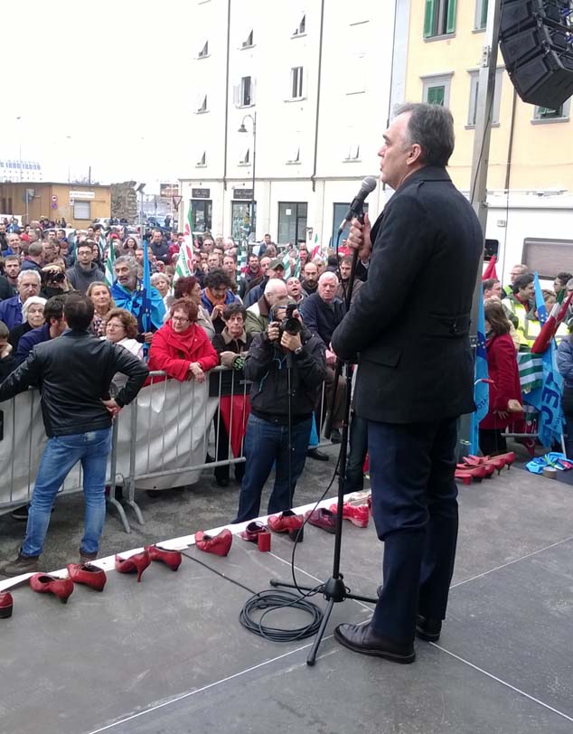 Grande sciopero generale per le vie di Livorno, con un lungo corteo formato da lavoratori e rappresentanti sindacali. Pare che abbiano sfilato oltre ottomila persone da piazza della Repubblica, via Grande fino al raduno in piazza del Luogo Pio. Una manifestazione pacifica, che ha avuto anche l’appoggio dei commerciati con una serrata disolidarietà, contro la difficile situazione economica che la città sta vivendo e che coinvolge migliaia di famiglie alle prese con disoccupazione e crisi.