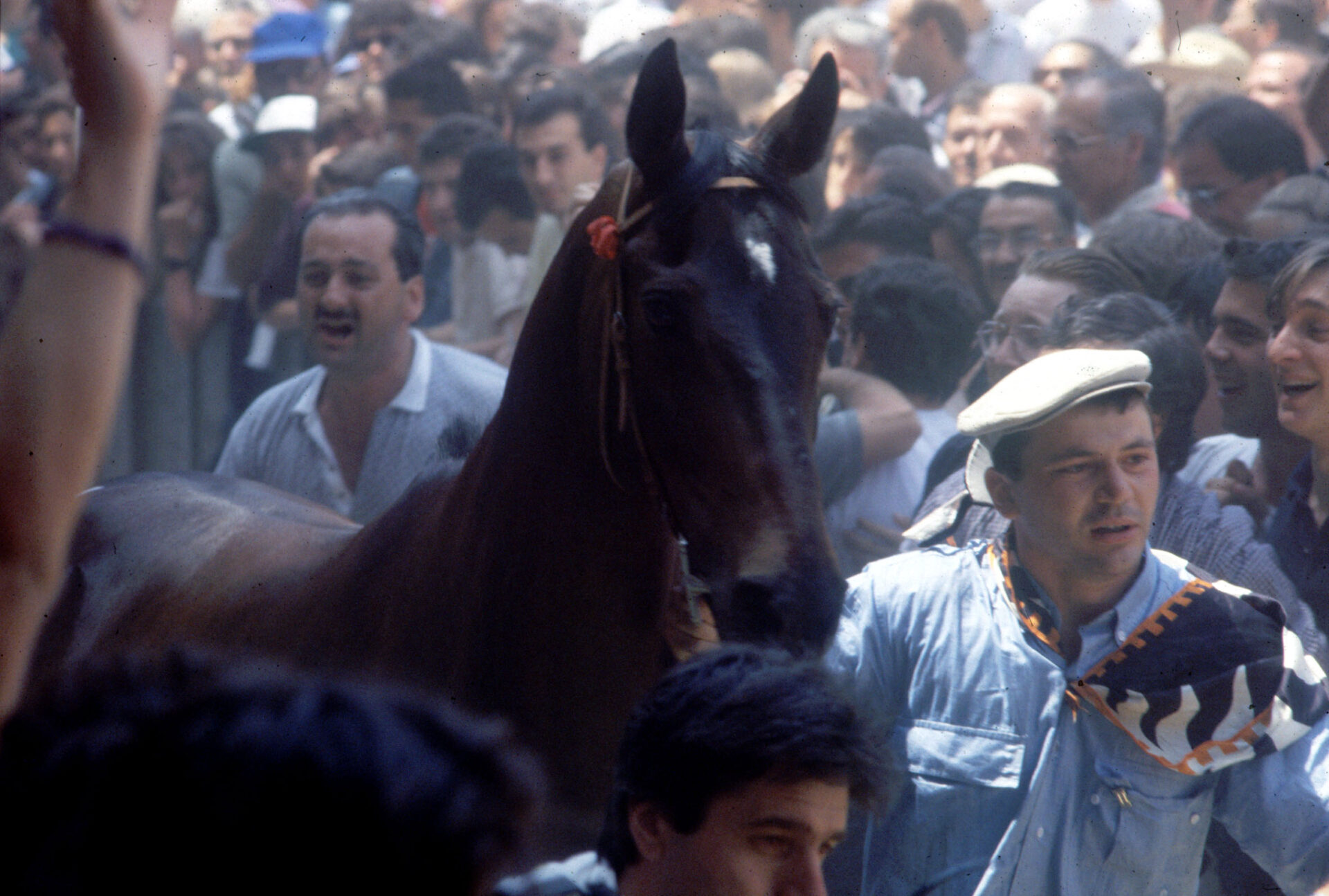 Cambiano le mode, gli usi e i costumi. Restano le emozioni, eterne, e la passione di una città intera, Siena, per l’animale più amato, il cavallo, tra gesti e rituali senza tempo che si tramandano di generazione in generazione, abbracciando all’unisono chi era giovane ieri e chi lo è oggi. Alla vigilia della Tratta e dell’assegnazione dei «barberi», tornano su agenziaimpress.it gli scatti del giornalista e fotografo Augusto Mattioli che ci terranno compagnia fino alla fatidica data del 2 luglio, giorno in cui in Piazza del Campo si correrà il Palio di Provenzano.