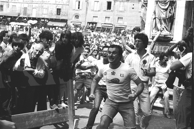 Riparte, oggi, giorno in cui a Siena viene presentato il Drapellone, la rubrica fotografica di agenziaimpress.it dedicata al Palio di Siena. Saranno gli scatti del giornalista e fotografo Augusto Mattioli a tenerci compagnia fino al 2 luglio, giorno in cui in Piazza del Campo si correrà il Palio di Provenzano. Nell’attesa, ecco un amarcord di foto in bianco e nero che raccontano emozioni e attimi che nella magia di Siena si rinnovano due volte l’anno.