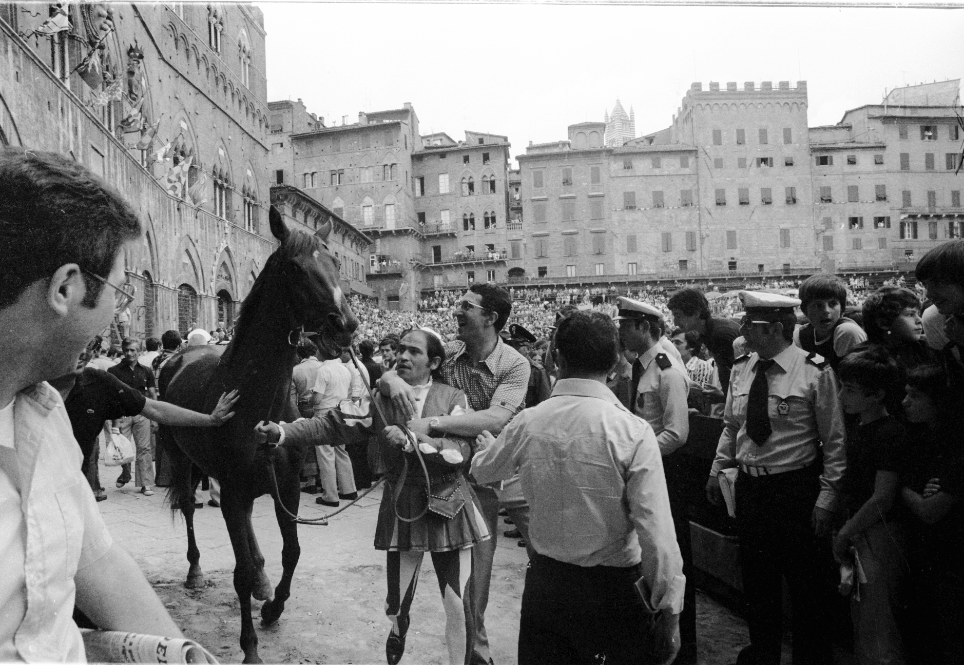 Tempo di Palio per Siena pronta a rituffarsi nella sua Festa. In attesa di vivere le emozioni sul tufo con l’estrazione e l’assegnazione dei cavalli alle dieci Contrade che correranno il Palio del 16 agosto, vogliamo regalare ai nostri lettori un tuffo nel passato grazie alle foto del giornalista Augusto e Mattioli. Uno sguardo in bianco e nero agli attimi catturati dalla macchina fotografica negli Settanta e Ottanta.