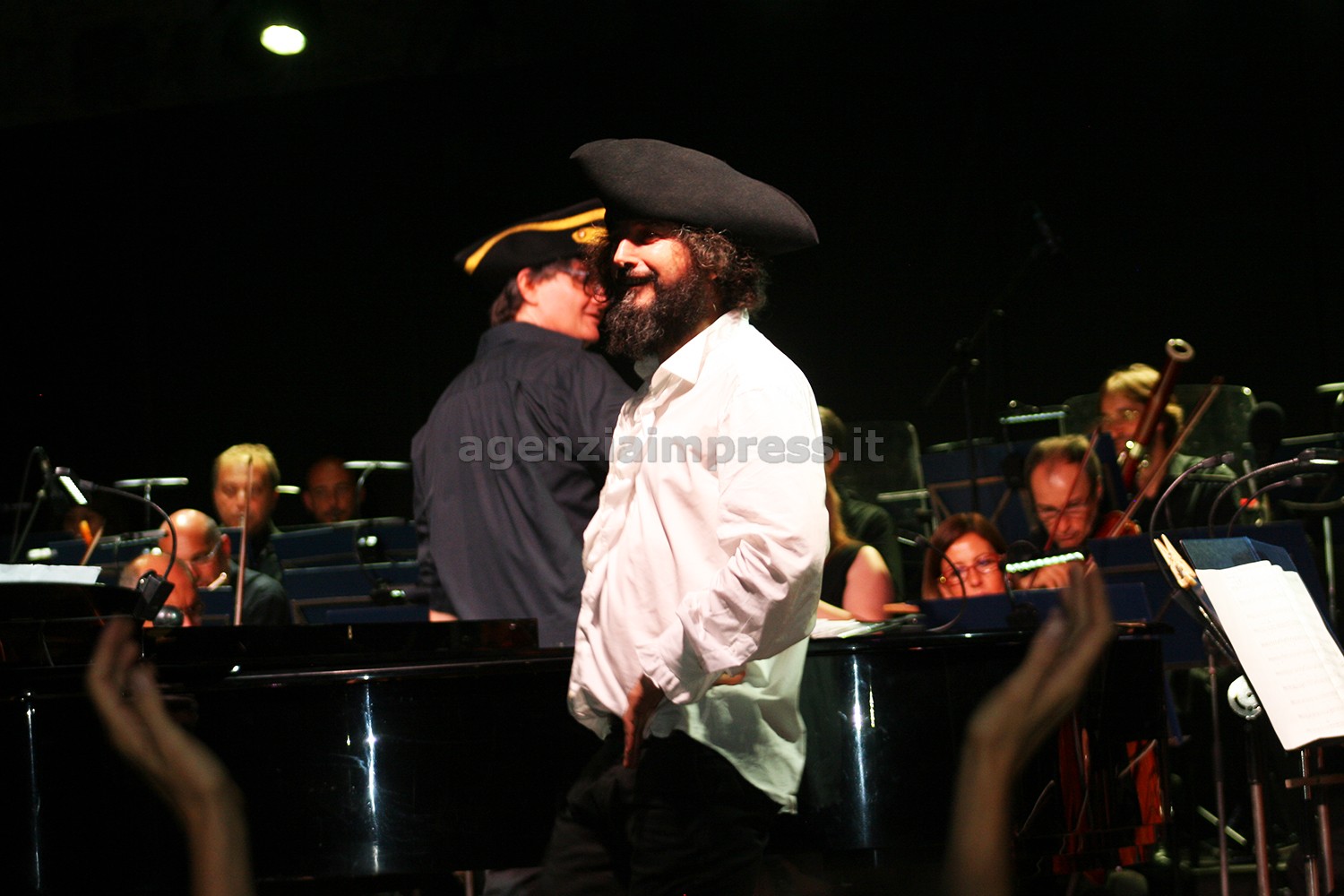 Nel finale, dopo l’intermezzo orchestrale dalla Cavalleria rusticana di Mascagni, spazio a “Nutless”, “Nella pioggia”, “Con una rosa”. Ultimo brano in scaletta una straordinaria “Camminante”, vestita al ritmo di bolero, con Capossela alla chitarra, «perchè il pianoforte è strumento domestico mentre la chitarra è adatta a chi si mette in viaggio». “Come quando gli uccelli se ne migrano lasciando il loro nido”.