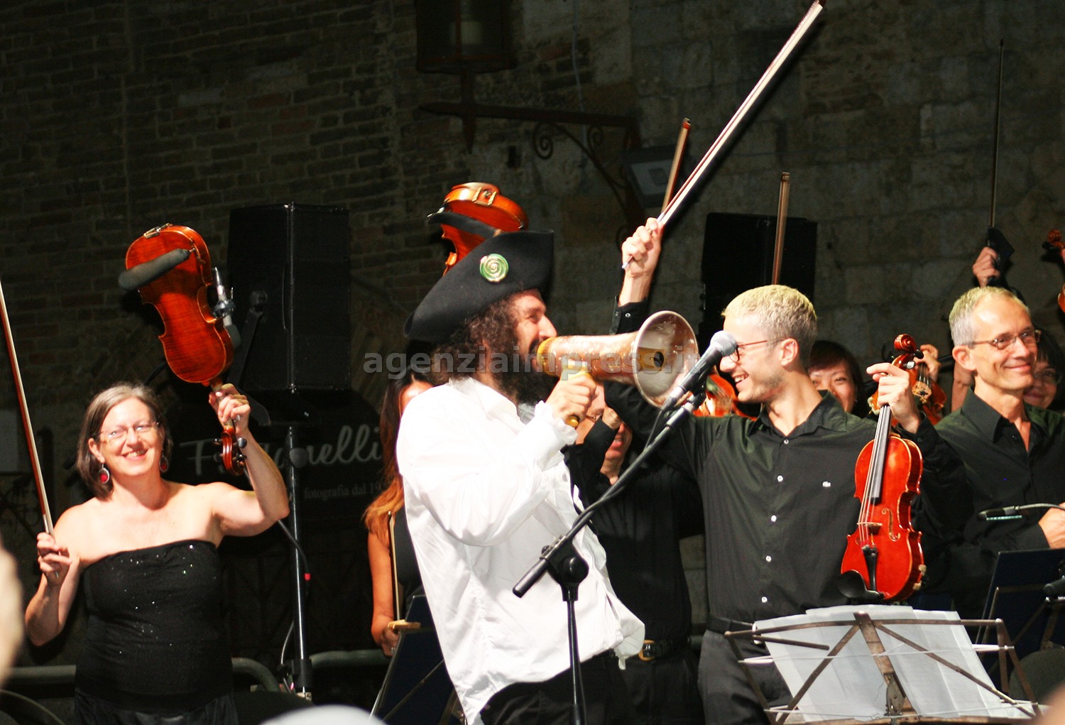 Poi, tutti in piedi e sotto il palco per il finale travolgente de “L’uomo vivo” e ci si dimentica perfino che sul palco ci sia un’orchestra di professori di classica e non una banda di paese. Magia della musica e miracoli delle serate speciali. Peccato che non potremo riascoltare le stesse note su disco. Chissà …