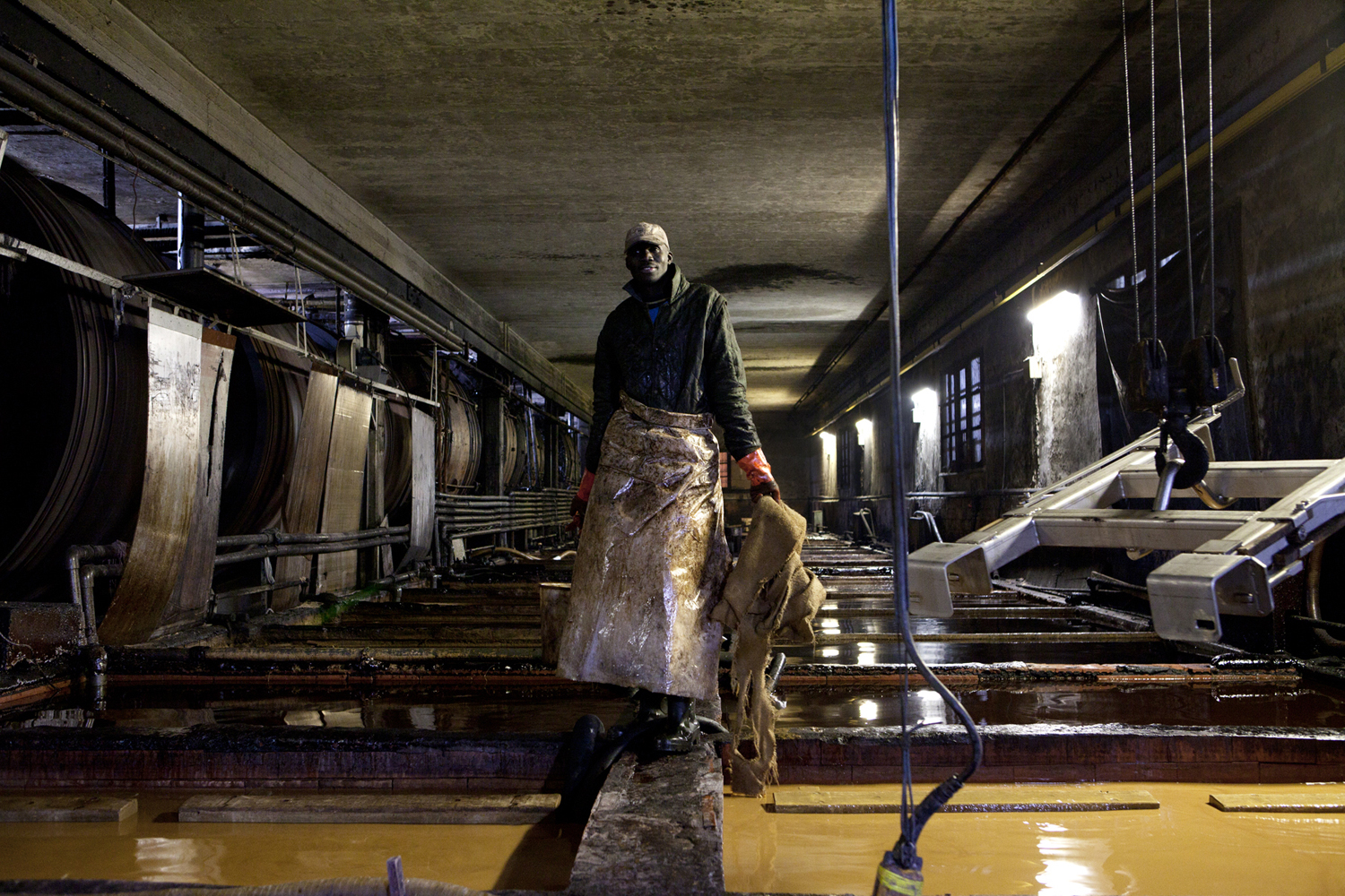 Lamonti Cuoio, San Miniato. Le pellli vengono estratte dopo la concia lenta in vasca.